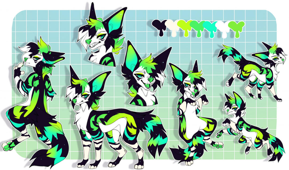 HackiA feral wolf with neon colors. Hacki used to be part of a pack, but eventually he got separated by it and had to become lonely. It was rough, but with the passing of time, he grows and lives in continuous travels, hoping to find the right person who can shelter him. He’s met many people and would offer his kindness and become their partner for a certain amount of time. It wouldn’t always go well, but that didn’t stop him.Hacki knows how to show his kindness towards others, but he would take any opportunity to be a benevolent prankster. And towards women, he would show a very strong affection for them. In combat, he doesn’t weild any weapons, so he relies on his claws to fight. In the case of need, he would enter a powered up state, with his body sparking lightning and his colors glowing stronger than normal.